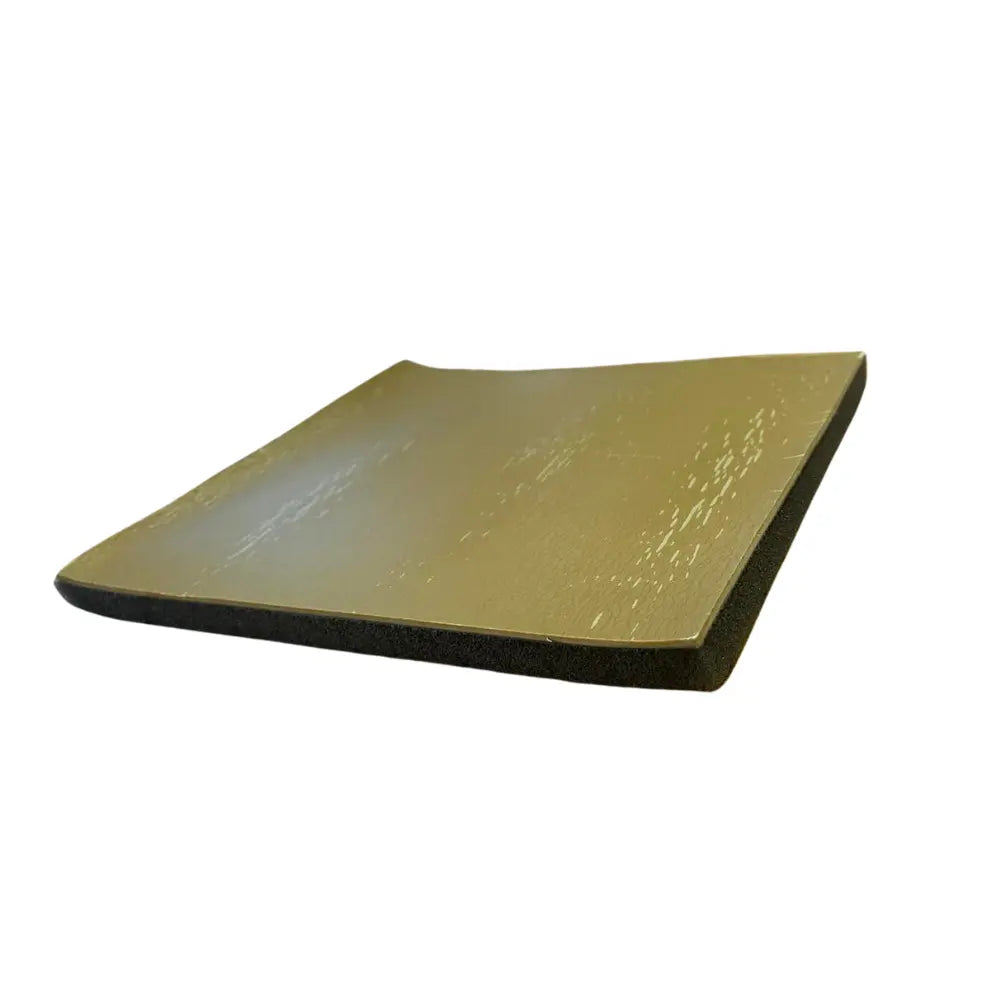 The panel features a sophisticated multi-layer construction that combines a dense elastic layer with high-performance sound-absorbing materials, surpassing the acoustic performance of conventional solutions. The dense elastic layer adheres tightly to surfaces, minimising sound transmission thanks to its high mass density of 2000 kg/m³ and low elastic modulus (E = 0.008 GPa).